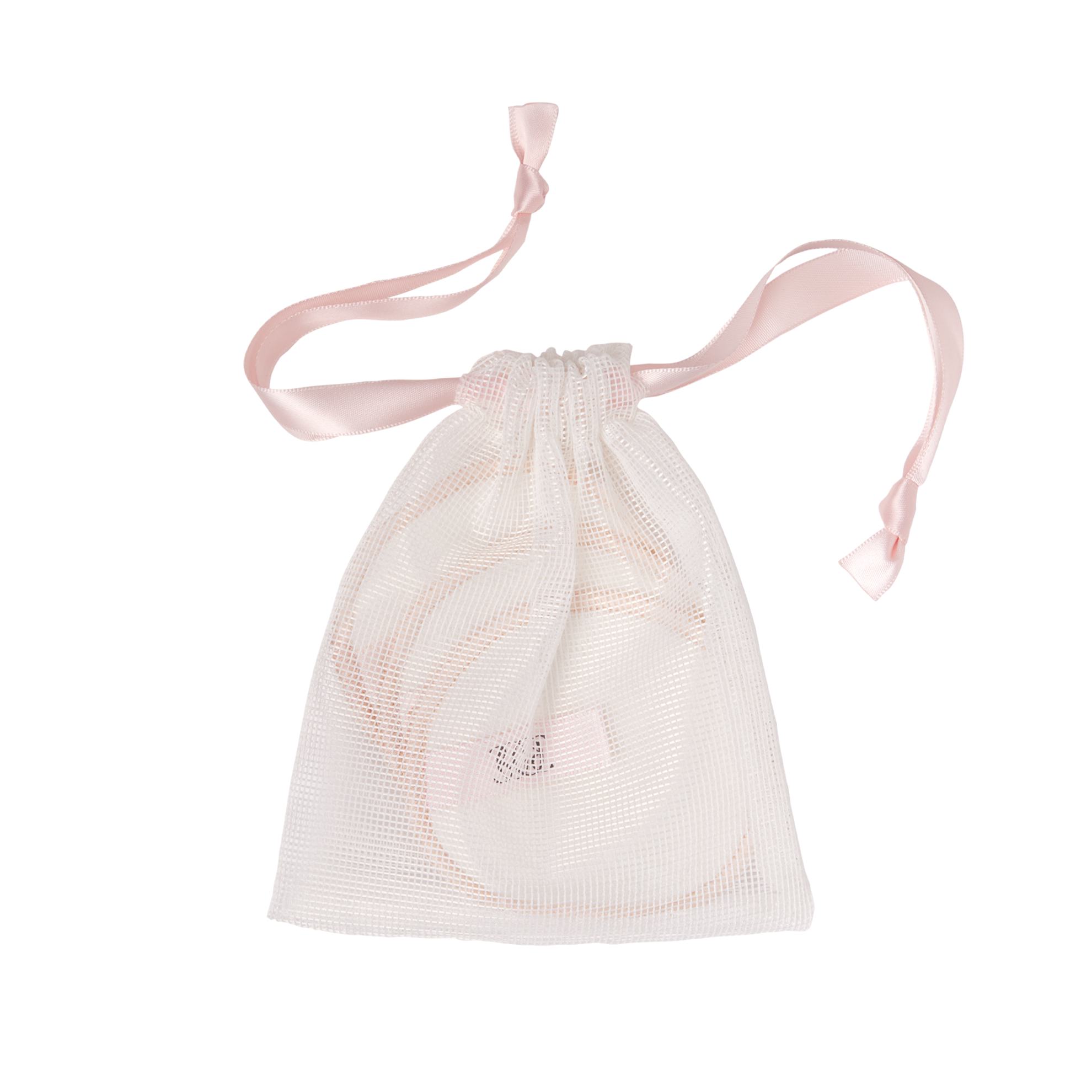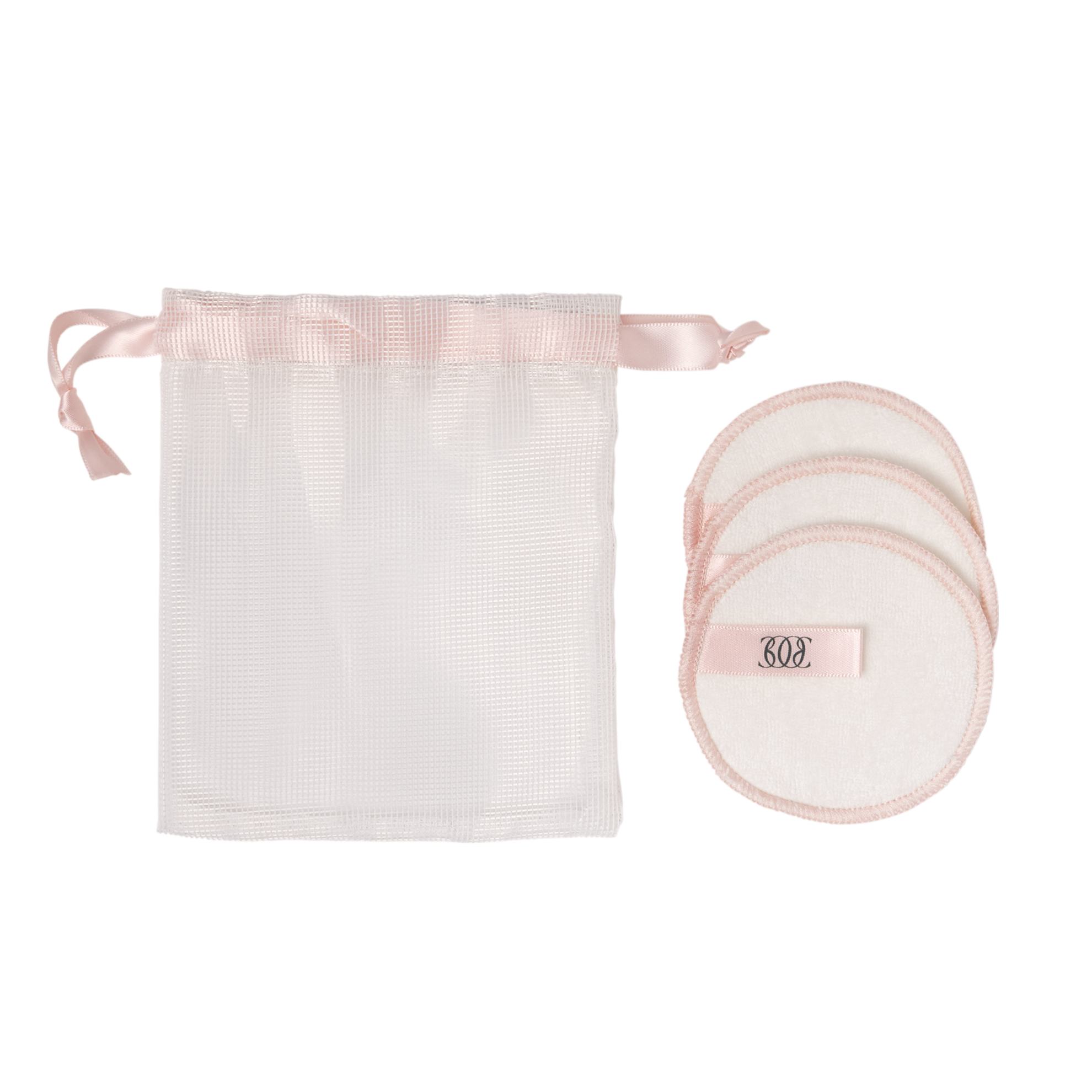 Bombažne blazinice za večkratno uporabo za bolj trajnostno lepotno rutino, v mrežasti torbici. Uporabite jih za tonike, čistila in odstranjevanje ličil.