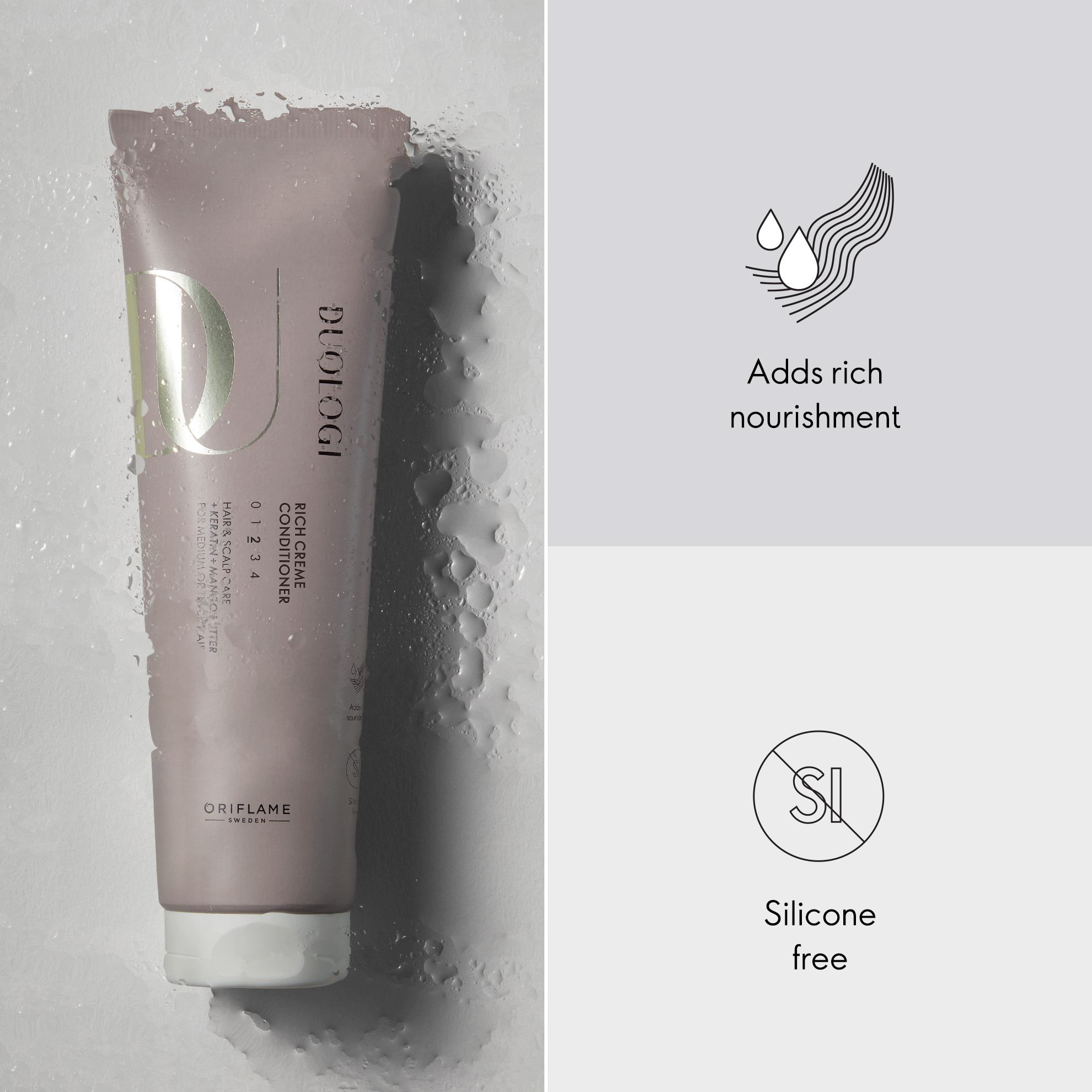 Optimalno za srednje goste do goste lase, bogata krema poskrbi, da postanejo mehki in gladki z manj kodranja.