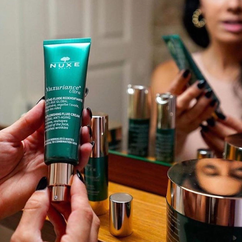 seruma Nuxuriance Ultraseruma Nuxuriance UltraKapljico fluidne kreme segrejte med dlanmi.