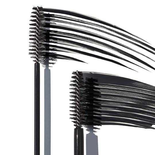 Intenzivna črna maskara s krtačko z dvema učinkoma: izberite zgornji pokrovček za dolžino in definiranost, spodnji pokrovček za dramatičen volumen ali pa prilagodite svoj videz.